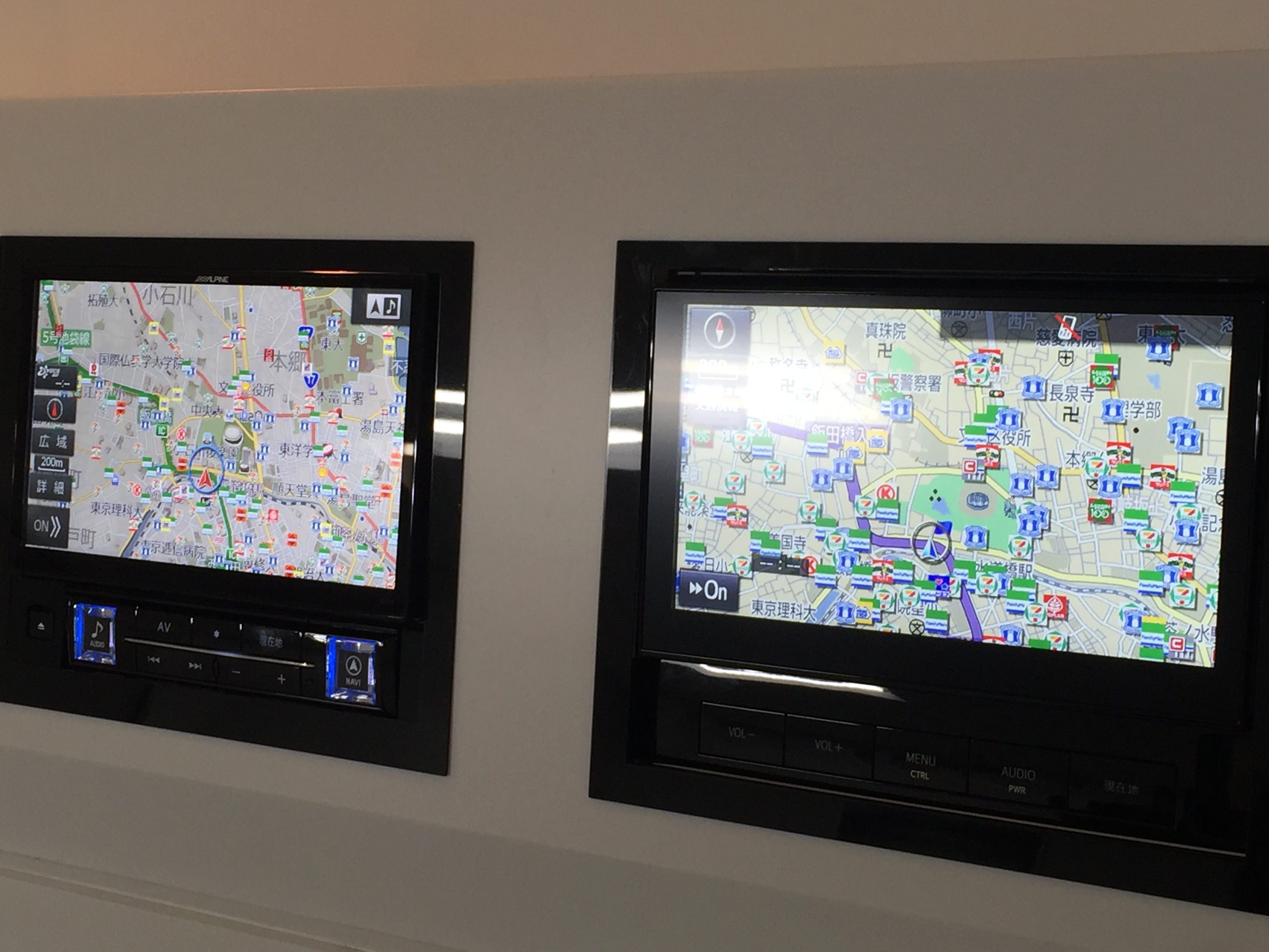 純正ナビの方が大きいのにアルパインナビの小さな方がくっきり表現されていて分かりやすいのが一目瞭然です。
