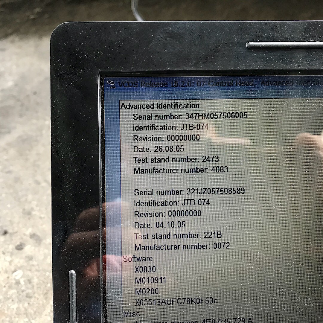 マキシスを紹介しておいてなんですが、お預かり中のアウディA8ですが、地デジを入れ替えしたもののTVキャンセラーを装着していないので、ここは慣れてるVCDSにてVIMをキャンセルしちゃいました。 IMG_3354 IMG_3355