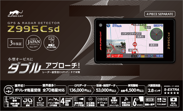 Zシリーズの最高峰Z995Csd、、、捕捉できるGPSの数は業界最高レベル、液晶画面もコンパクトで取付場所にこだわるなら