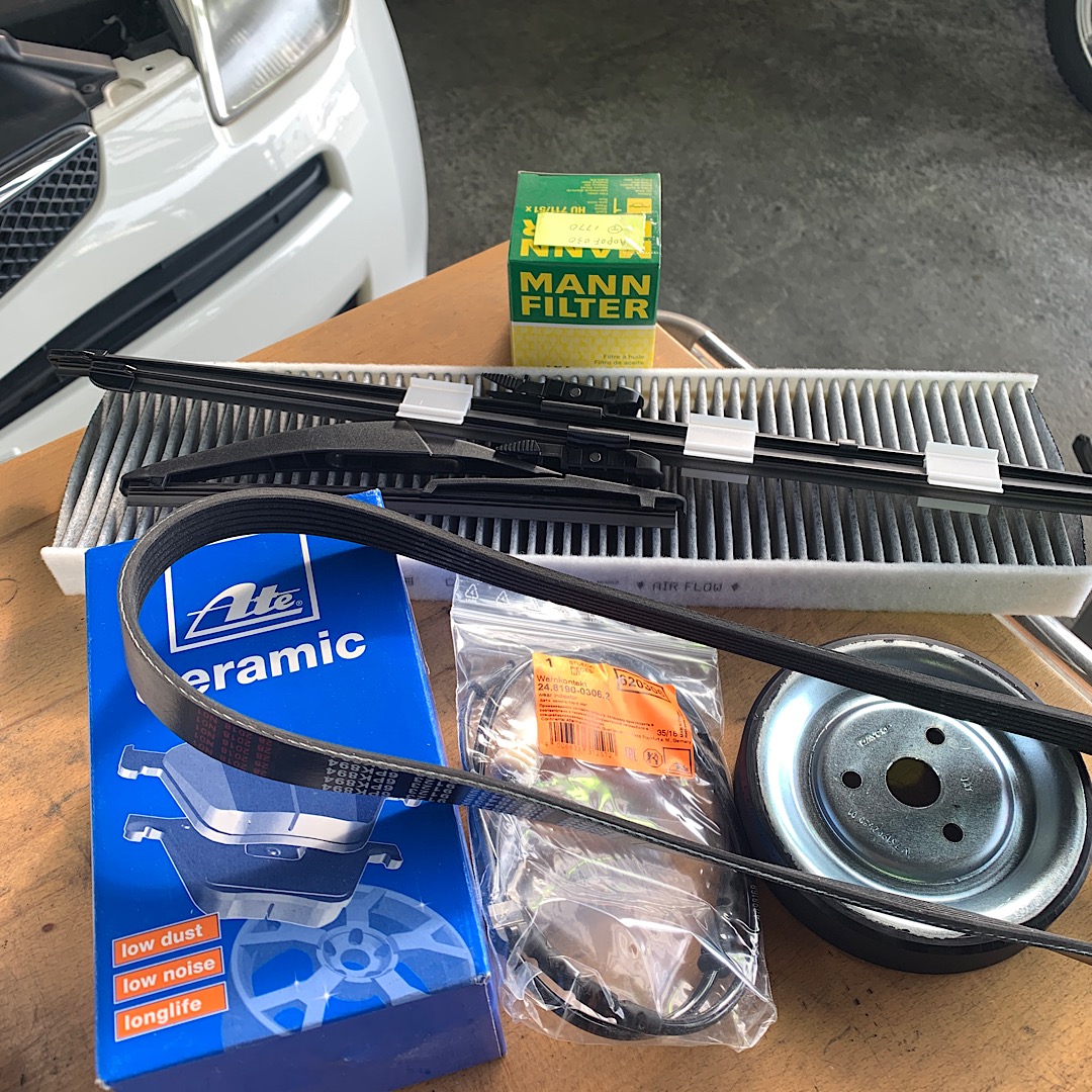 ウォーターポンププーリーもヒビがはいっていたので交換です。