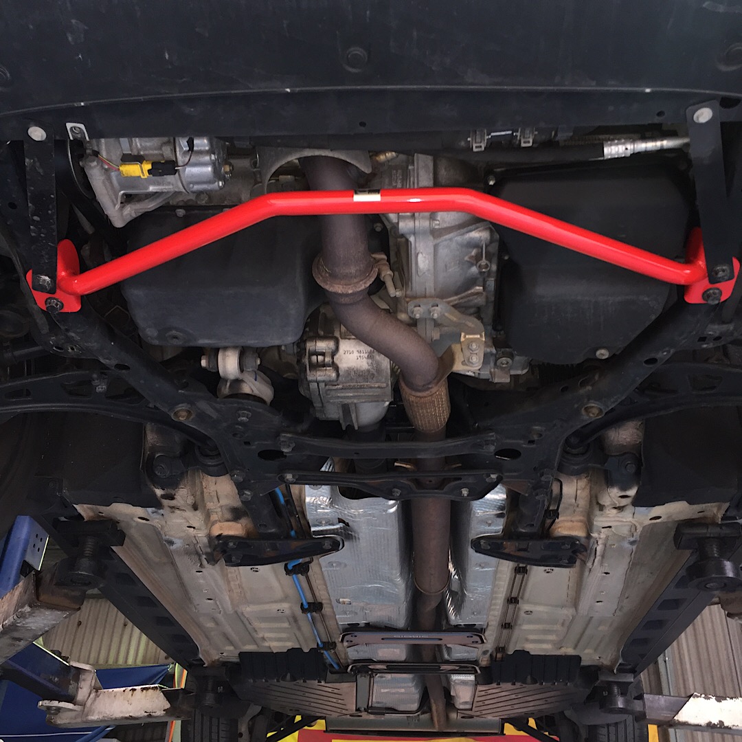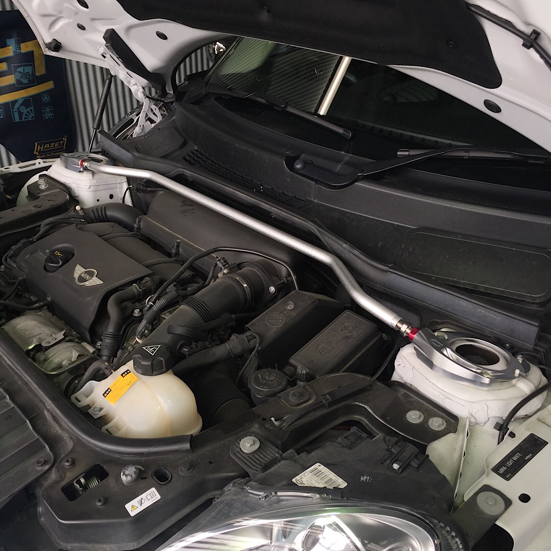 R60 ミニ クロスオーバーにGIOMIC(ジオミック)のボディー補強系のパーツ取付です。