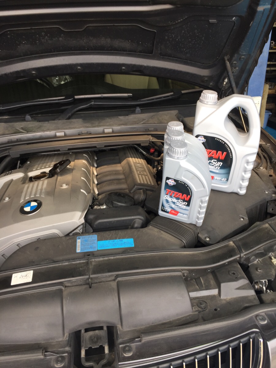 E90 ブレーキメンテナンスとオイル交換で入庫。